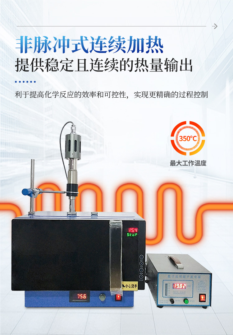 采用最新变频技术,通过变频器将50Hz工频转换为10000——30000Hz可变频率,取代了传统微波反应器使用的高压变压器,完美解决了传统微波反应器精确控温时,高压变压器受尖峰脉冲的冲击,造成变压器频繁损坏的技术缺陷。MCU根据Pt100传感器实时检测到的温度变化数据、反应物质极性、热容变化、反应时间等数学模型的变化条件,自适应PID调节,自动变频控制微波输出功率,从而精确控温。