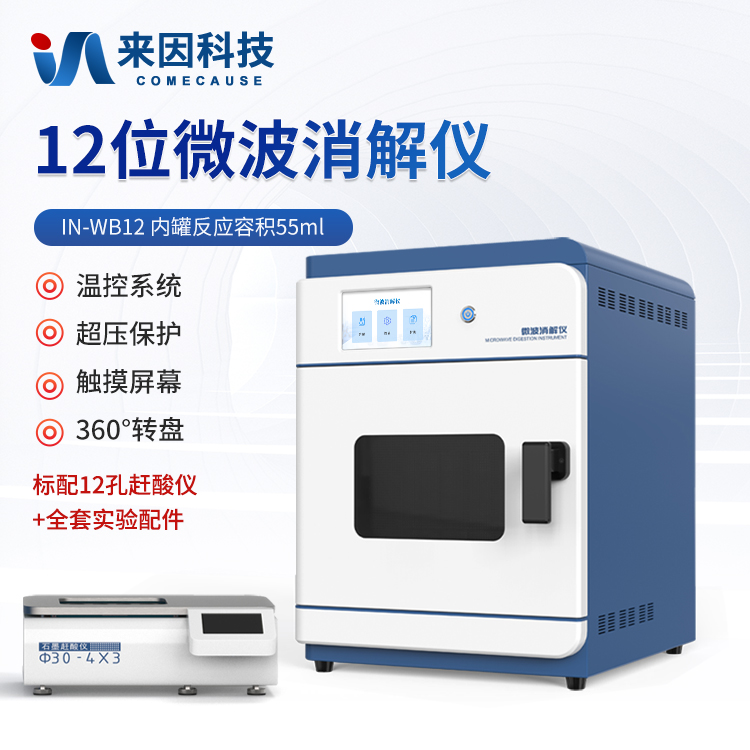 简要描述: 12位微波消解仪是一种用于样品前处理的设备,通过微波加热技术对样品进行快速、有效的消解。该仪器广泛应用于食品、环境保护、疾病控制、质量监督、商品检验、科研院所等领域,特别适用于各种样品的酸消解和溶剂萃取。