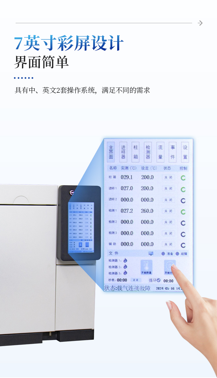 ● 载气具有压力保护功能,气体压力低 0.4mpa 时仪器自动切断电源有效保护色谱柱使用安全。