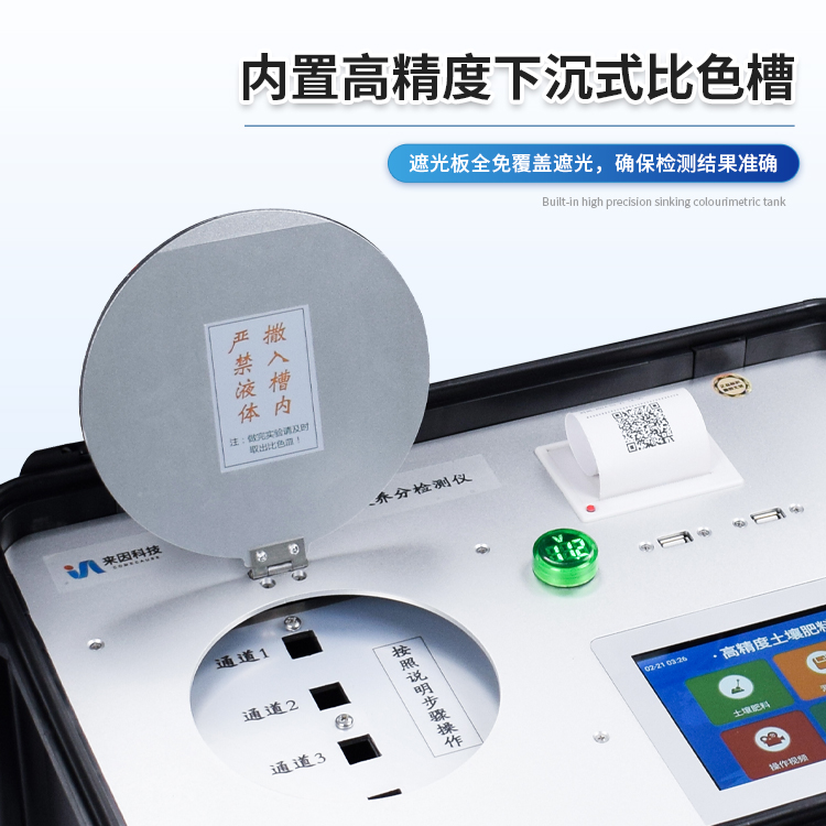 ★25.比色槽内置于下沉式密闭舱内,直径为15.7cm圆形遮光板全面覆盖遮光,避免实验过程中出现漏光影响检测精度,保证检测结果准确。