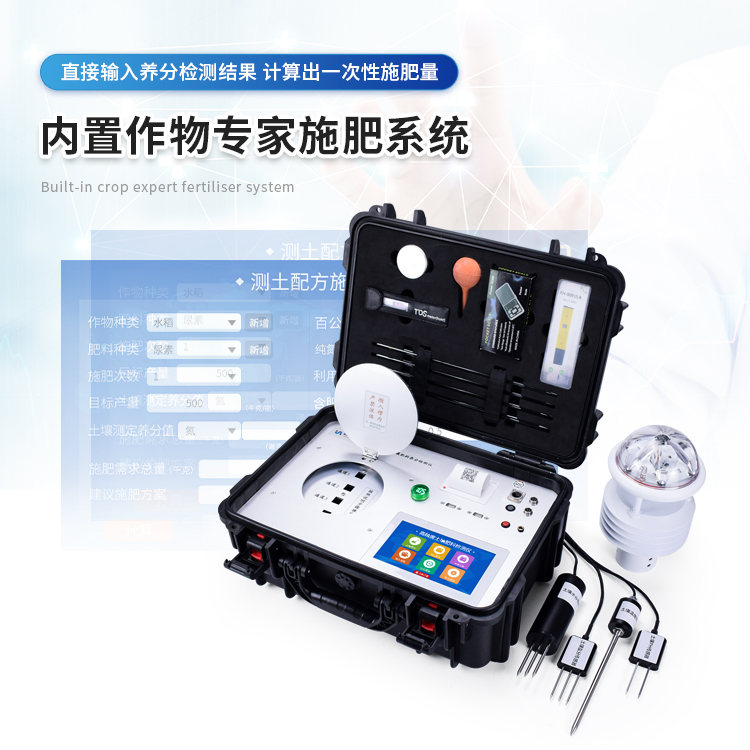 简要描述: 高智能土壤环境测试及分析评估系统设备内置测土配方施肥系统,检测完成后可直接进行测土配方施肥计算;同时具有单独配方施肥计算模块;仪器内置百余种常见经济作物标准养分值,内置施肥校正系数,可对目标产量计算施肥量,以此指导农业生产;测土配方施肥结果可打印,打印内容包含作物种类、肥料种类、目标产量、需求总量、建议施肥方案。