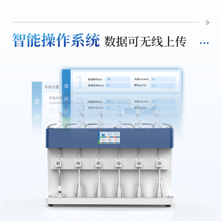 3.智能触控:7寸液晶触摸屏,支持自定义保存最多1000种蒸馏方法,内置18种国标方法。