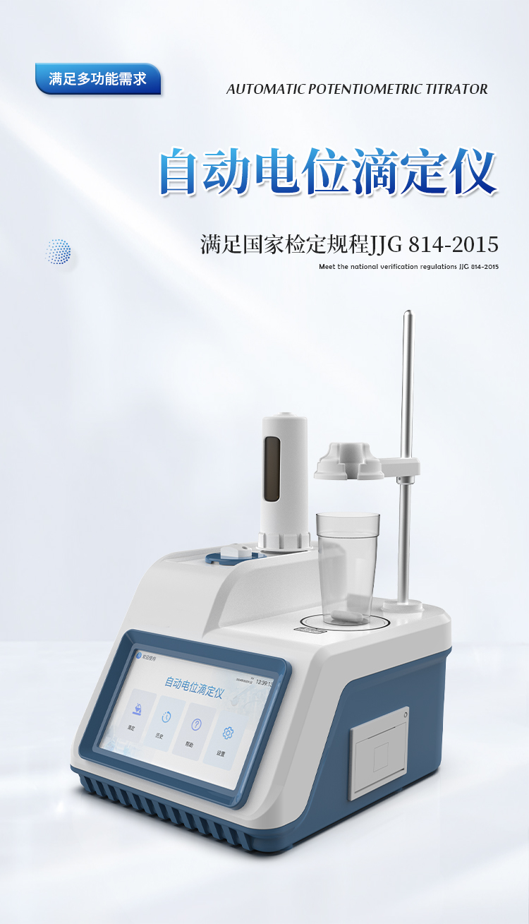 自动电位滴定仪是一种用于化学分析的精密仪器,他通过自动添加滴定剂来确定样品中特定成分的浓度。该仪器基于电位滴定原理工作,即根据在滴定过程中电池电动势的变化来确定滴定终点的一款滴定设备。设备满足国家检定规程JJG 814-2015《自动电位滴定仪》仪器级别中的0.05级别,即仪器最大示值误差为±1.5%,仪器示值重复性≤0.2%