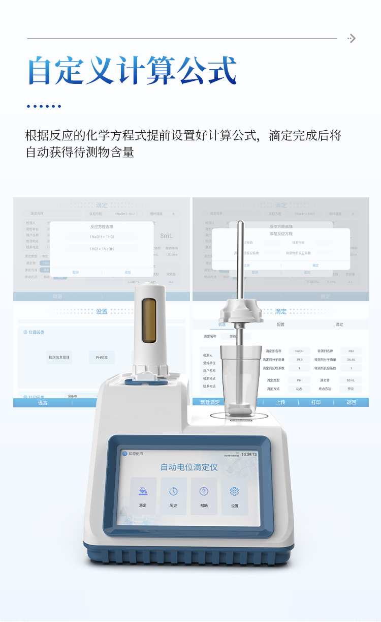 5、可自定义计算公式,根据反应的化学方程式提前设置好计算公式,滴定完成后将自动获得待测物含量;