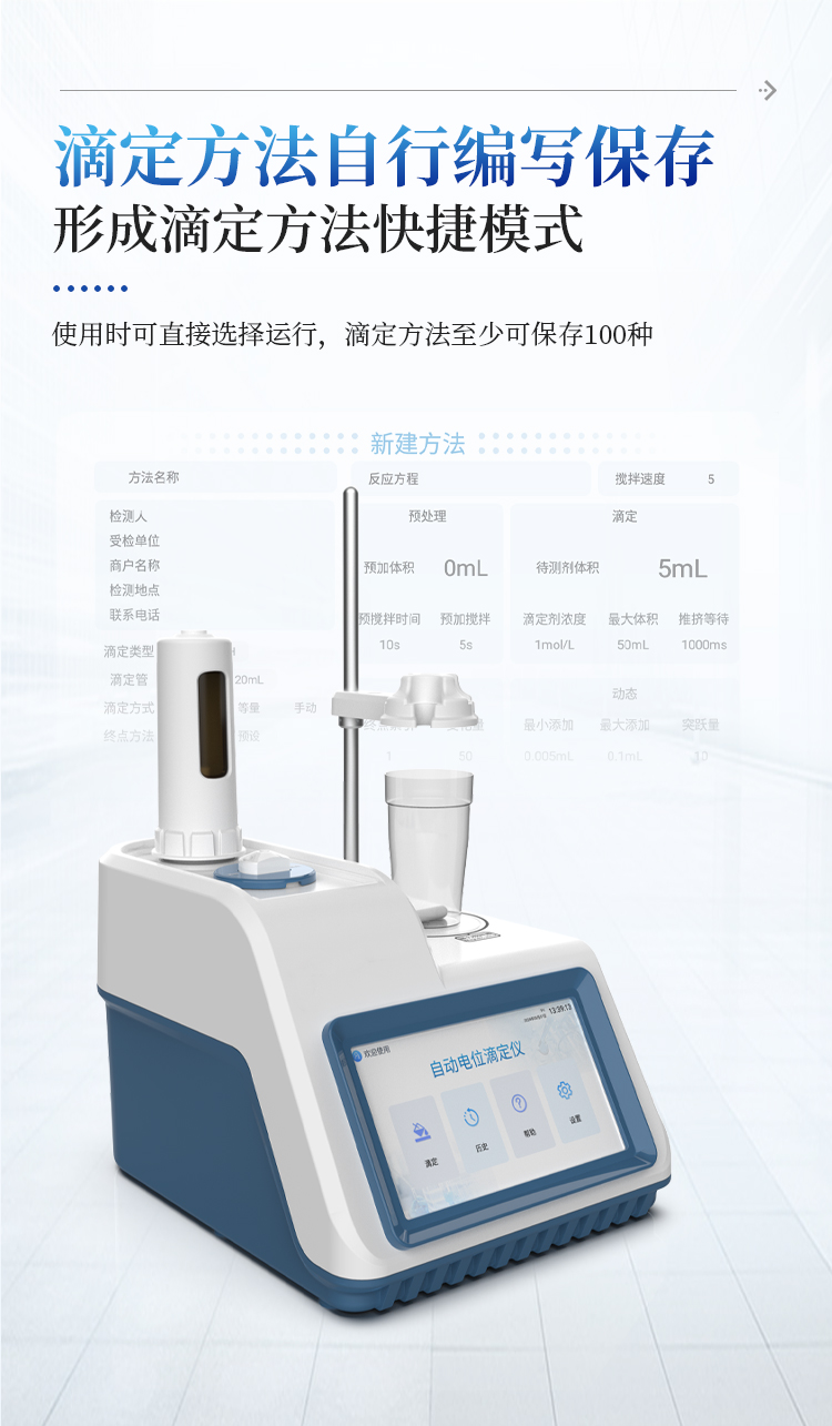 6、滴定方法可自行编写并保存,形成滴定方法快捷模式,在使用时可直接选择运行,滴定方法至少可保存100种;
