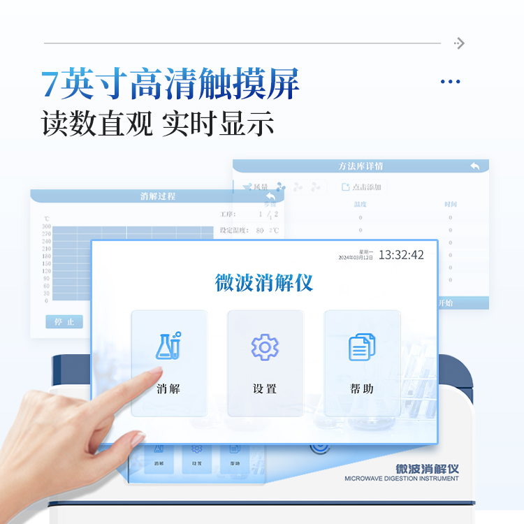 微波消解仪是一款专为现代实验室设计的高通量、智能化样品前处理设备。仪器采用高性能工业级磁控管与智能控温技术,搭配全方位多重安全防护系统,确保实验过程安全可控。设备拥有高通量样品处理能力,结合360°同向连续旋转技术,保障了批内样品处理的均一性与重复性。控制系统采用非接触式红外精准控温,通过大尺寸触摸屏可直观监控全程温度曲线,操作智能简便。