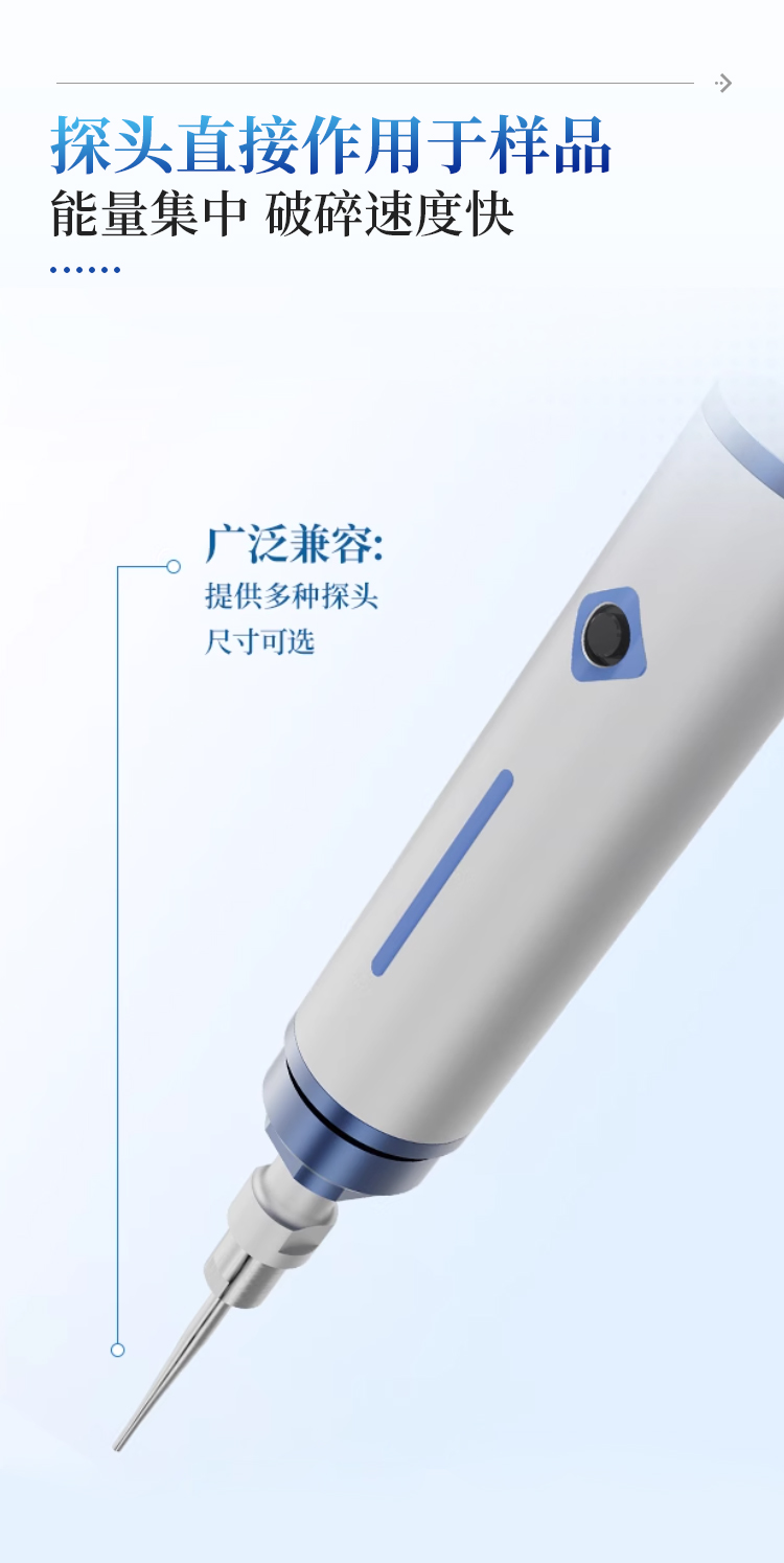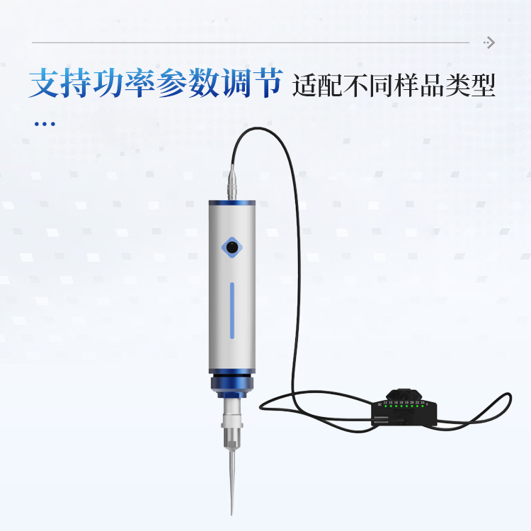 简要描述: 手持式超声波细胞破碎仪是一种便携式、高精度的超声波处理设备,适用于实验室小规模样品破碎、乳化、分散和提取等操作。其一体化设计集成了超声波发生器和换能器,操作灵活,可手持使用或搭配支架固定,适用于生物、化学、材料等领域的高效样品处理。