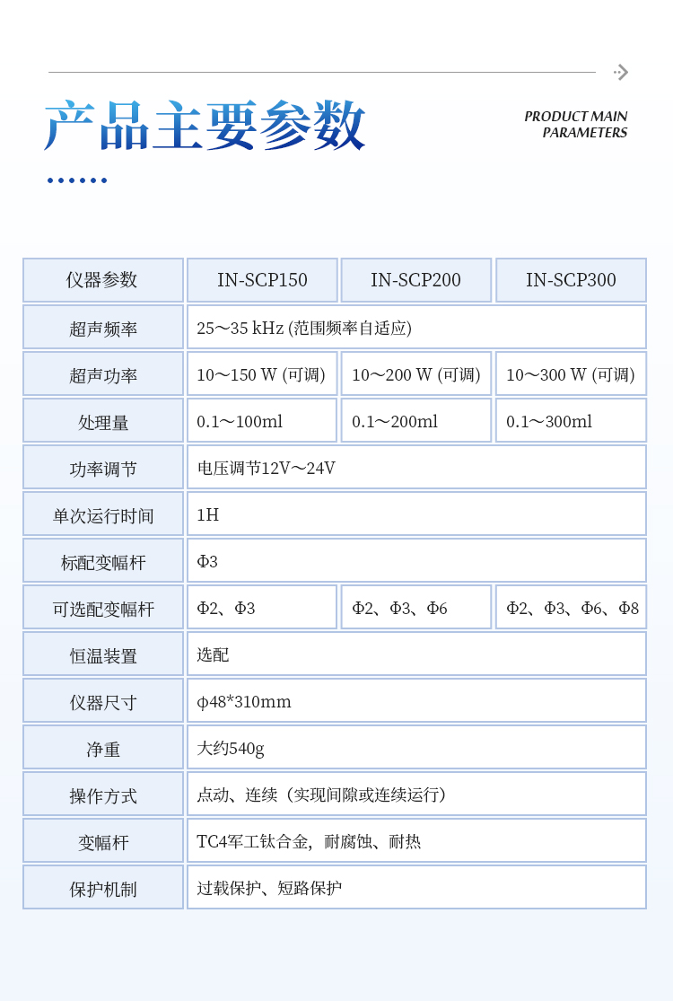 2.超声功率:10~300 W (可调)