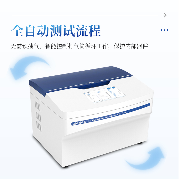 全自动凝点倾点测定仪主要用于石油产品的倾点凝点值测定,是一款集自动化、智能化和高精度于一体的凝点/倾点测定设备。通过创新温控技术与自动气压检测系统,可快速、准确地测定液体样品的凝点和倾点。
